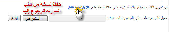 ومن ثم نقوم بحفظ نسخه من القالب كإجراء إحتياطي ( وذلك من الضروري جداً في أي إضافه ستقوم بها وذلك للرجوع لها في حالة وجود أي خطأ ) .. كما هو مبين في الصوره التاليه